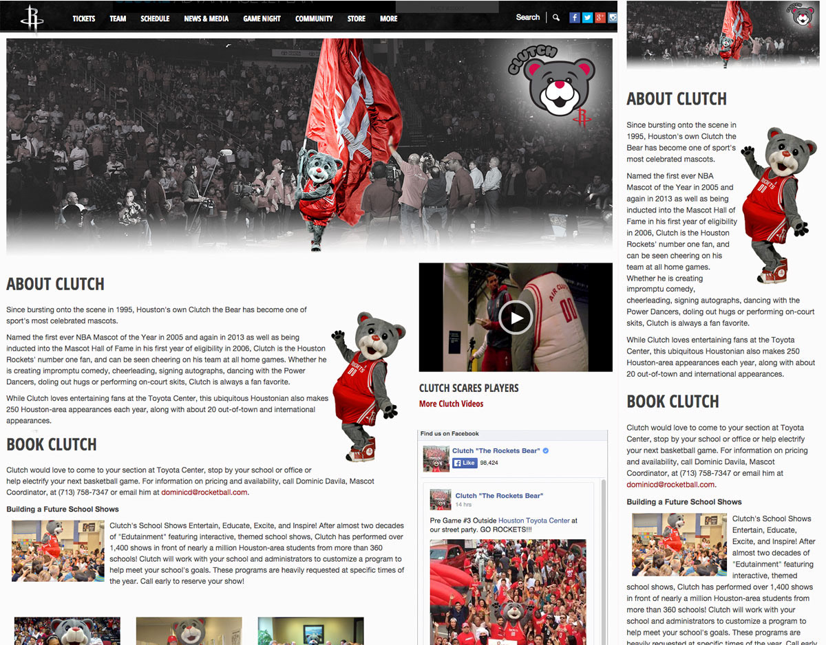 Examples of the web projects I led and the web pages I designed for Rice University and the Houston Rockets.