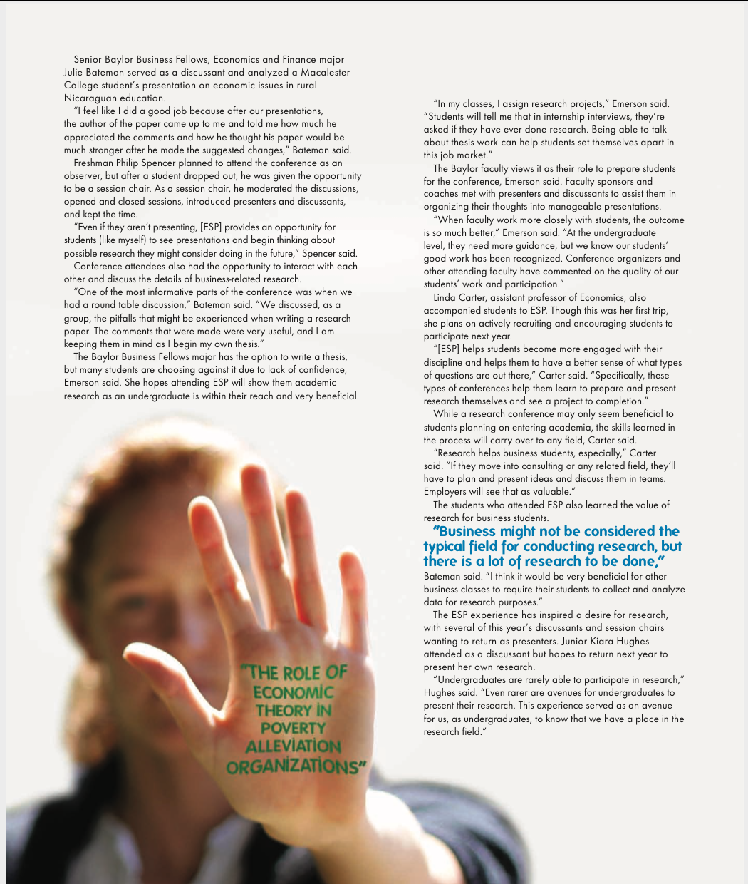 A press release I wrote for Baylor University's Hankhamer School of Business that was distributed to their news and academic publication contacts.